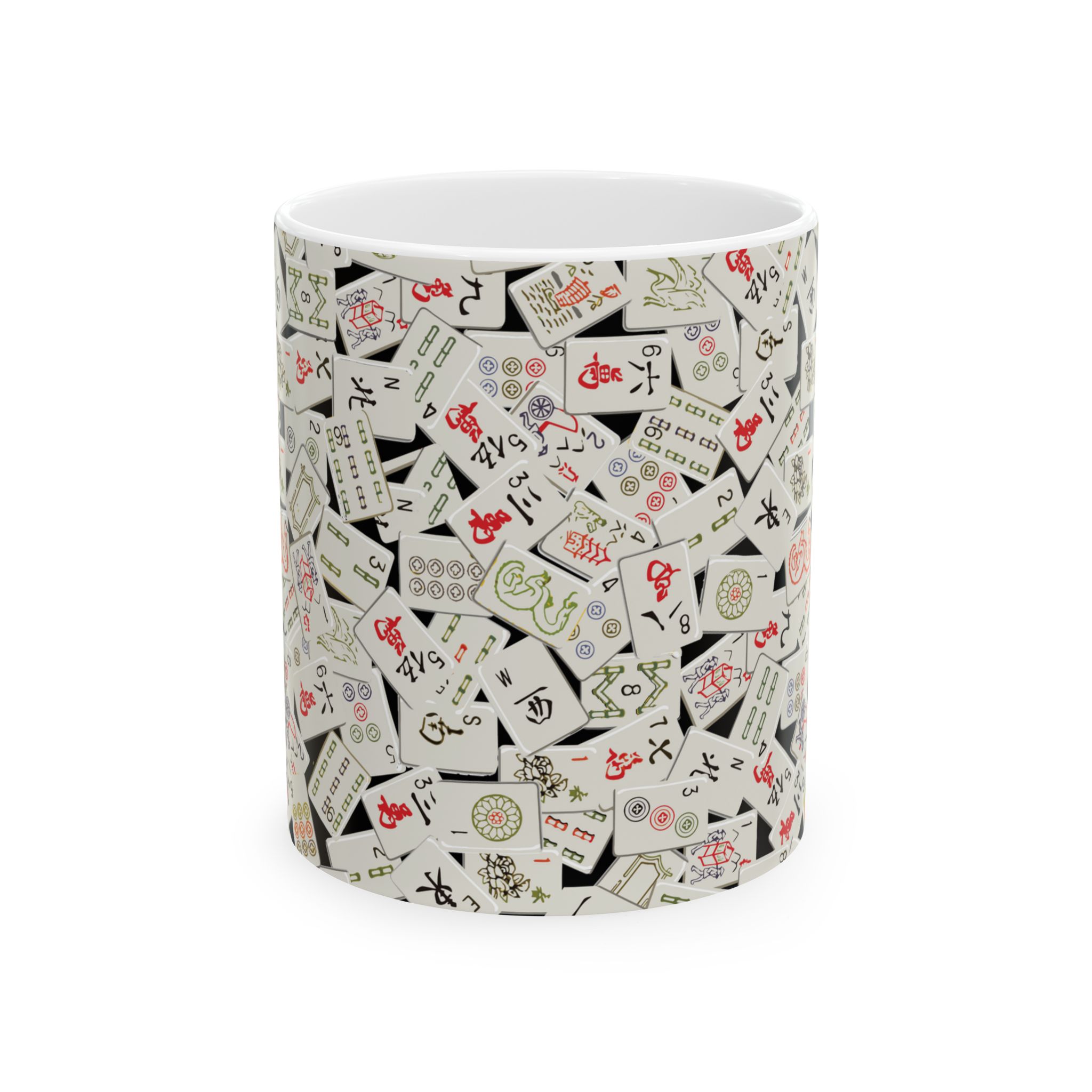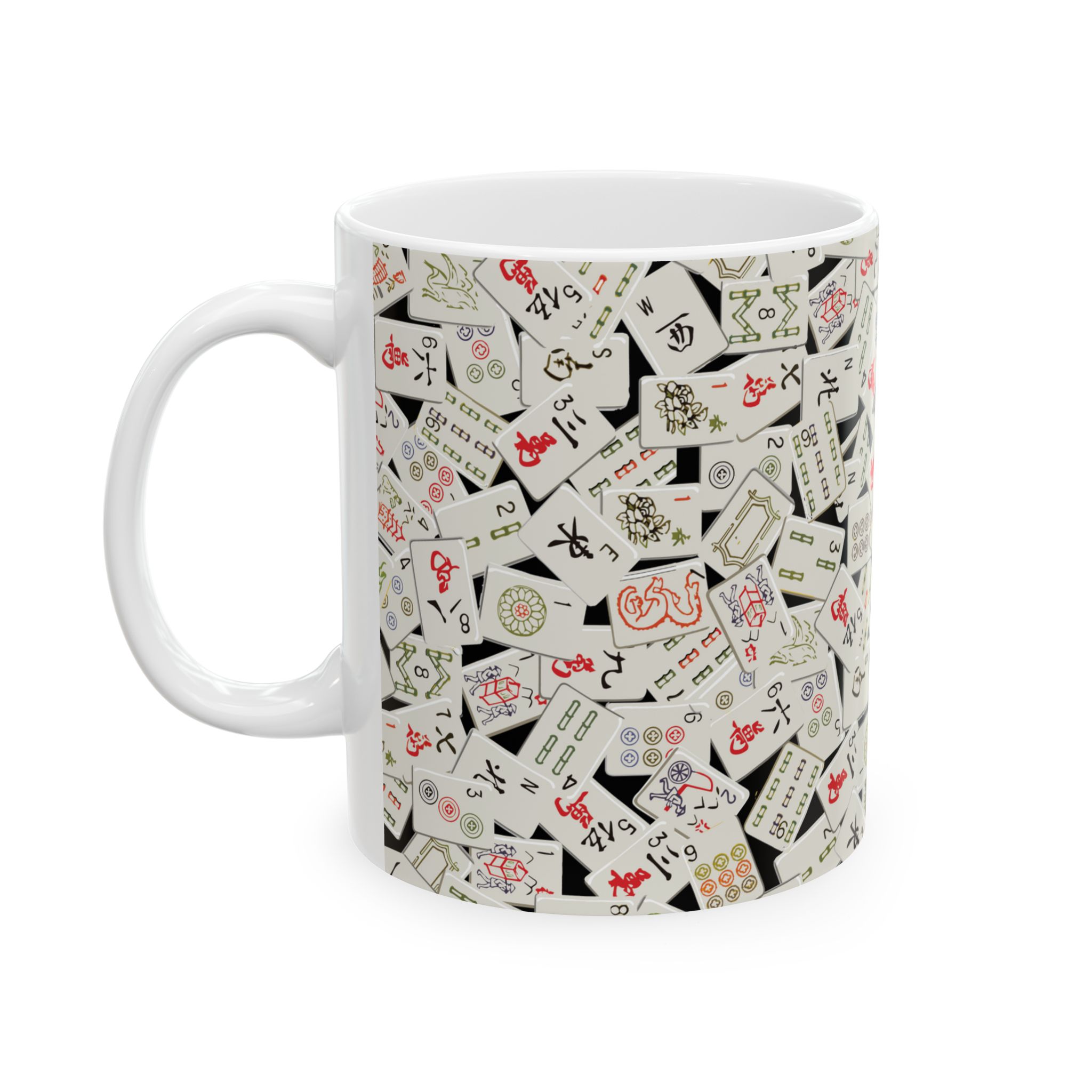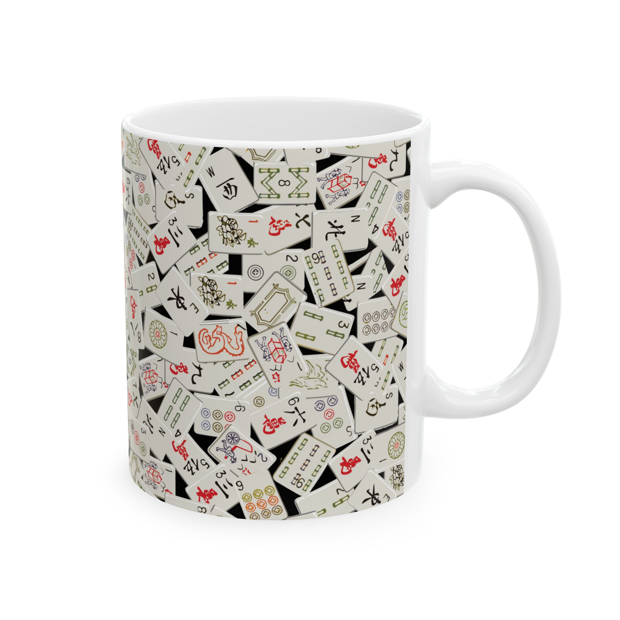 Warm-up with a nice cuppa out of this ceramic mahjong coffee mug. It’s BPA and Lead-free, microwave & dishwasher-safe, and made of white, durable ceramic in an 11-ounce size. The perfect gift for coffee, tea, and mahjong lovers.